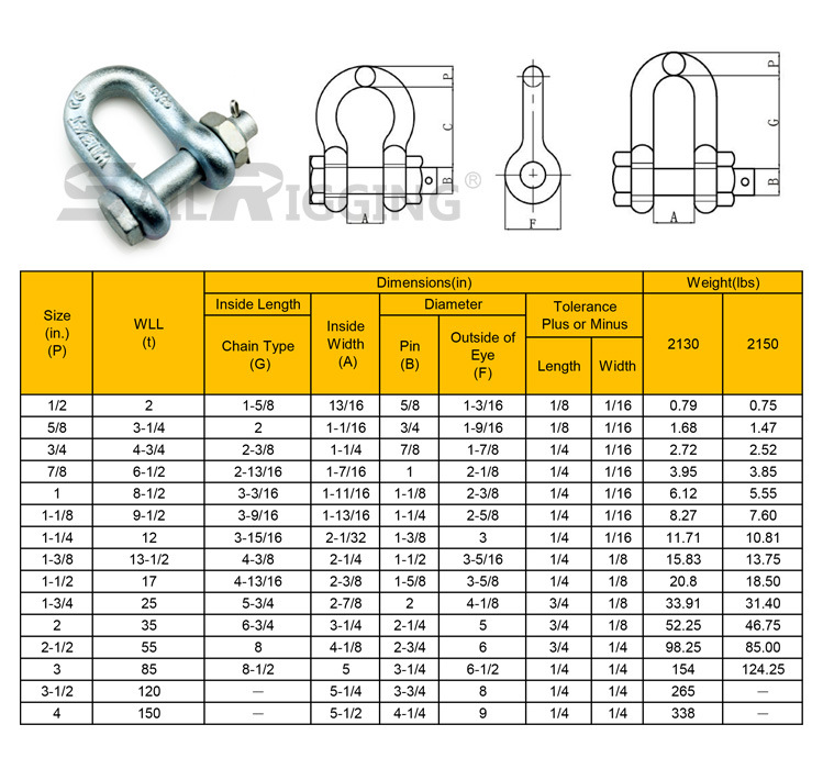 | La norma principal | G209 gemela, g210 gemela, G2130 gemela, G2150 gemela, grillete de tipo europeo, tipo jis shakle |